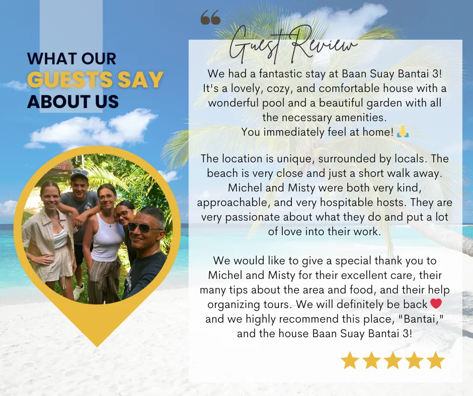 Baan Suay Bantai is rated 5-stars by previous guests across all your beloved booking sites!